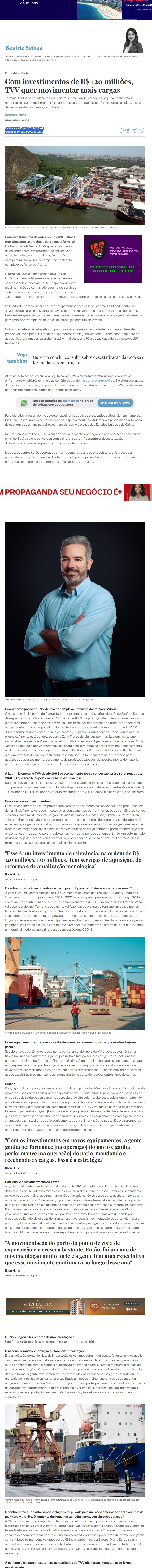 Publicado em https://www.agazeta.com.br/colunas/beatriz-seixas/com-investimentos-de-r-120-milhoes-tvv-quer-movimentar-mais-cargas-0421